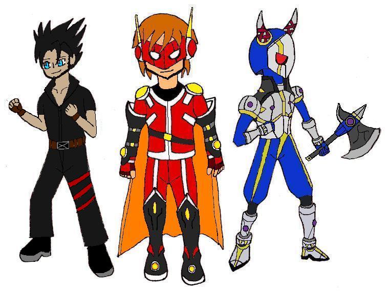 右から豪腕さんのキャラ、坂井亮さん(天轟雷鬼変身前)、
